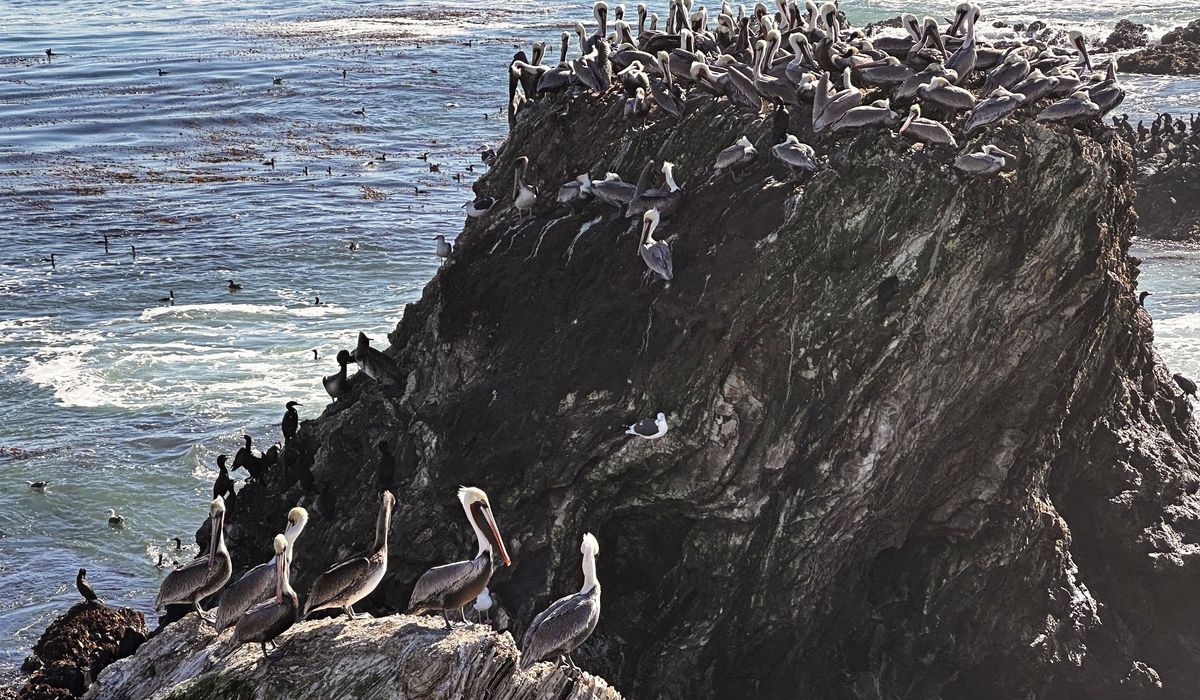 MORRO BAY, Calif. — On a jagged coastline in Central California, brown pelicans gather on rock promontories, packed in like edgy commuters as they take flight to feed on a vast school of fish just offshore. The water churns in whitecaps as the big-billed birds plunge beneath the surface in search of northern anchovies, Pacific sardines and mackerel.