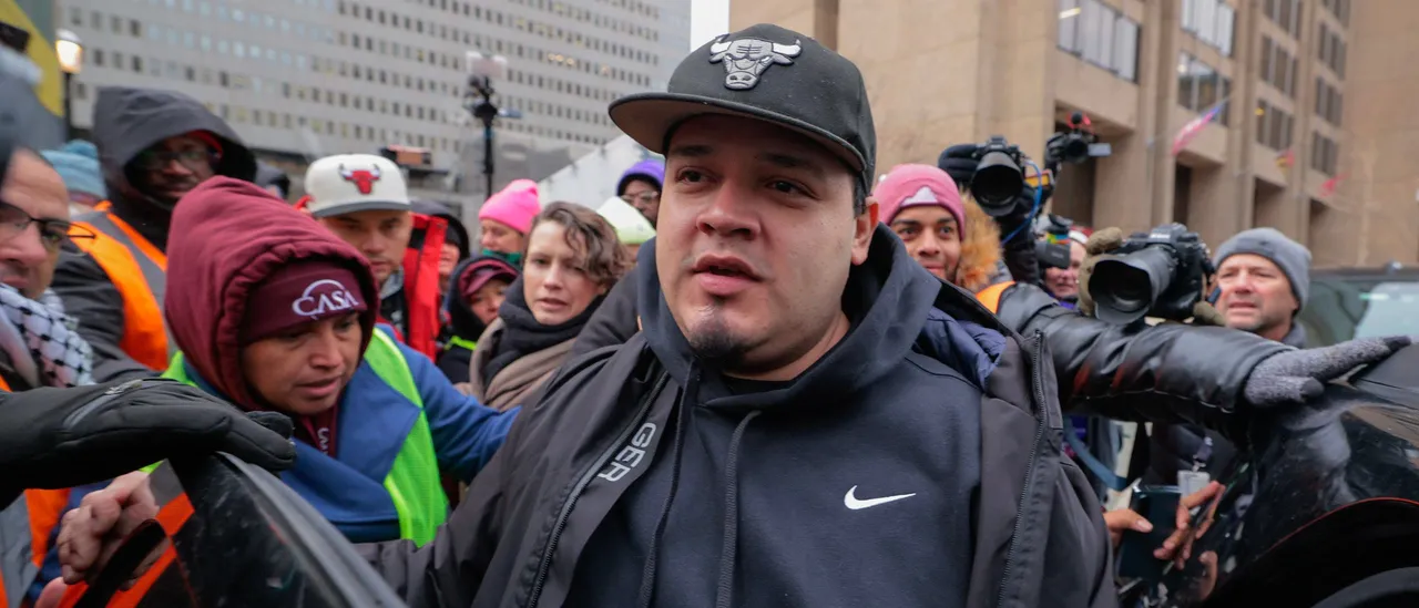 GREENBELT, MARYLAND – DECEMBER 22: Kilmar Abrego Garcia arrives with his wife Jennifer Vasquez Sura and his attorney Simon Sandoval-Moshenberg (L) at U.S. District Court for the District of Maryland on December 22, 2025 in Greenbelt, Maryland. (Photo by Alex Wong/Getty Images)
