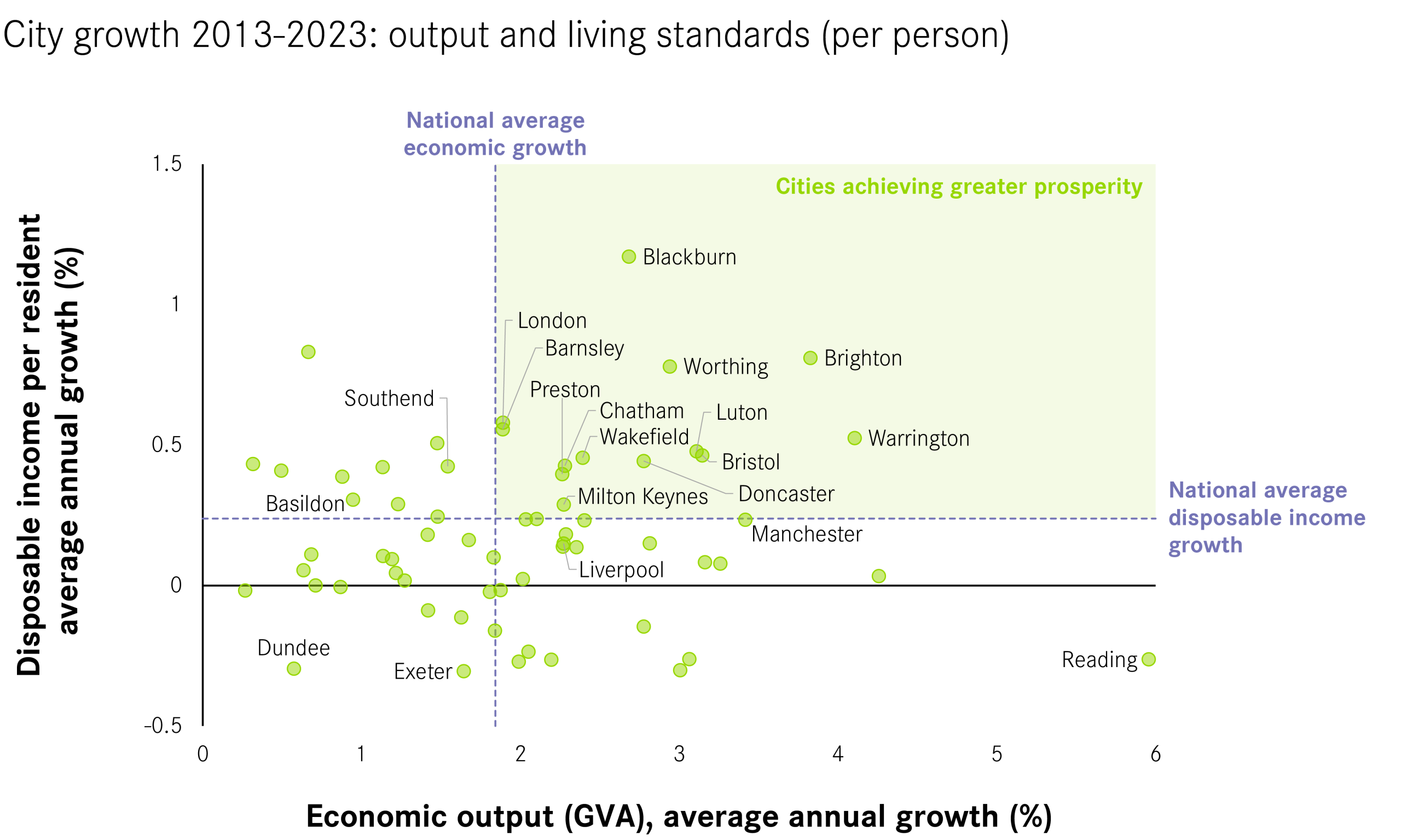 Some of the answers to this problem can be found in the previous period of Conservative government. As Cities Outlook 2026 shows, from 1998 to 2008, average economic and disposable incomes each grew by around 3 per cent each year. From 2013 to 2023, the economy grew by around 2 per cent a year – but disposable incomes only grew by 0.1 per cent per year.