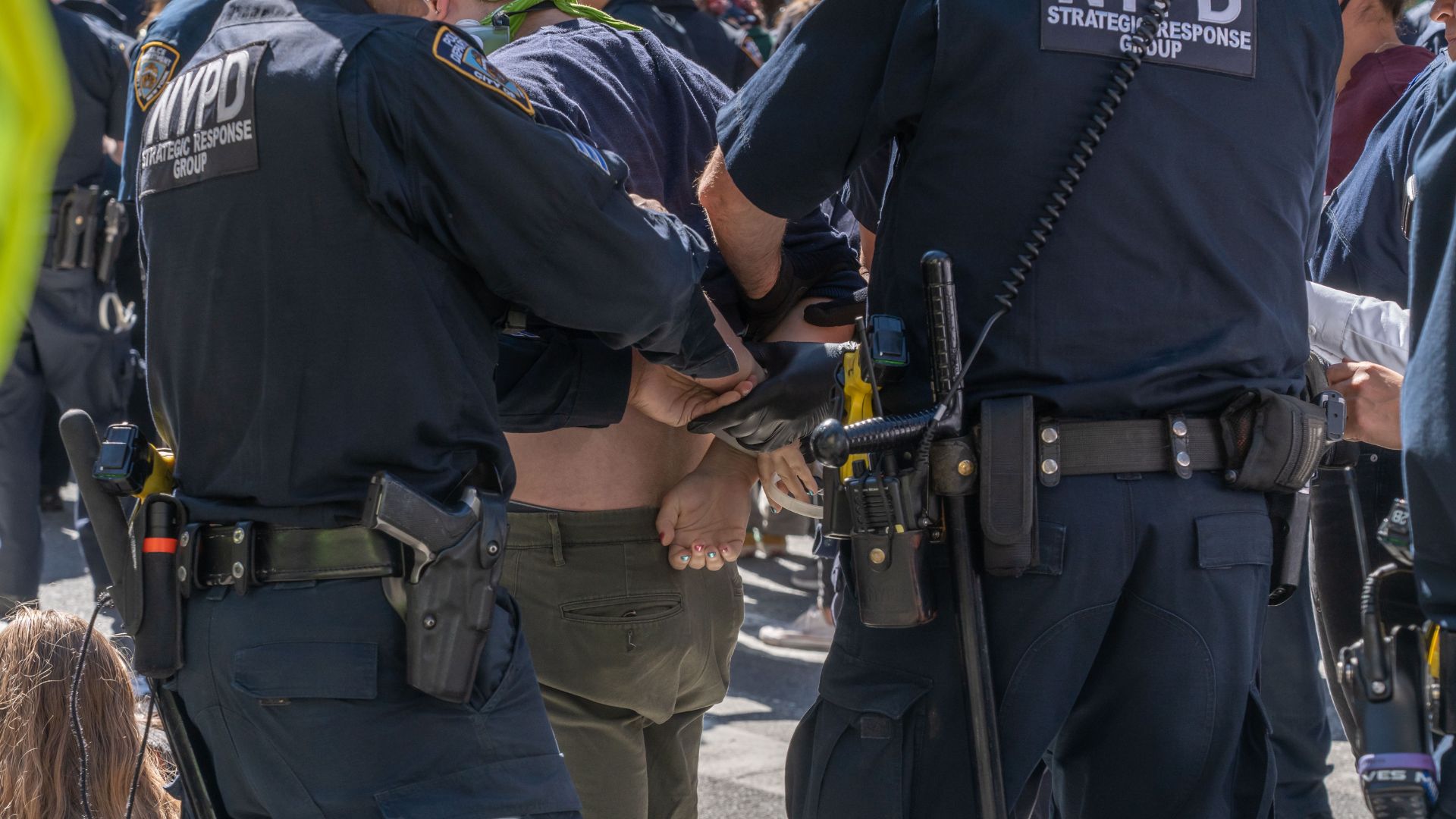 The NYPD said officers were dispatched after a 911 call reported protesters obstructing the area.