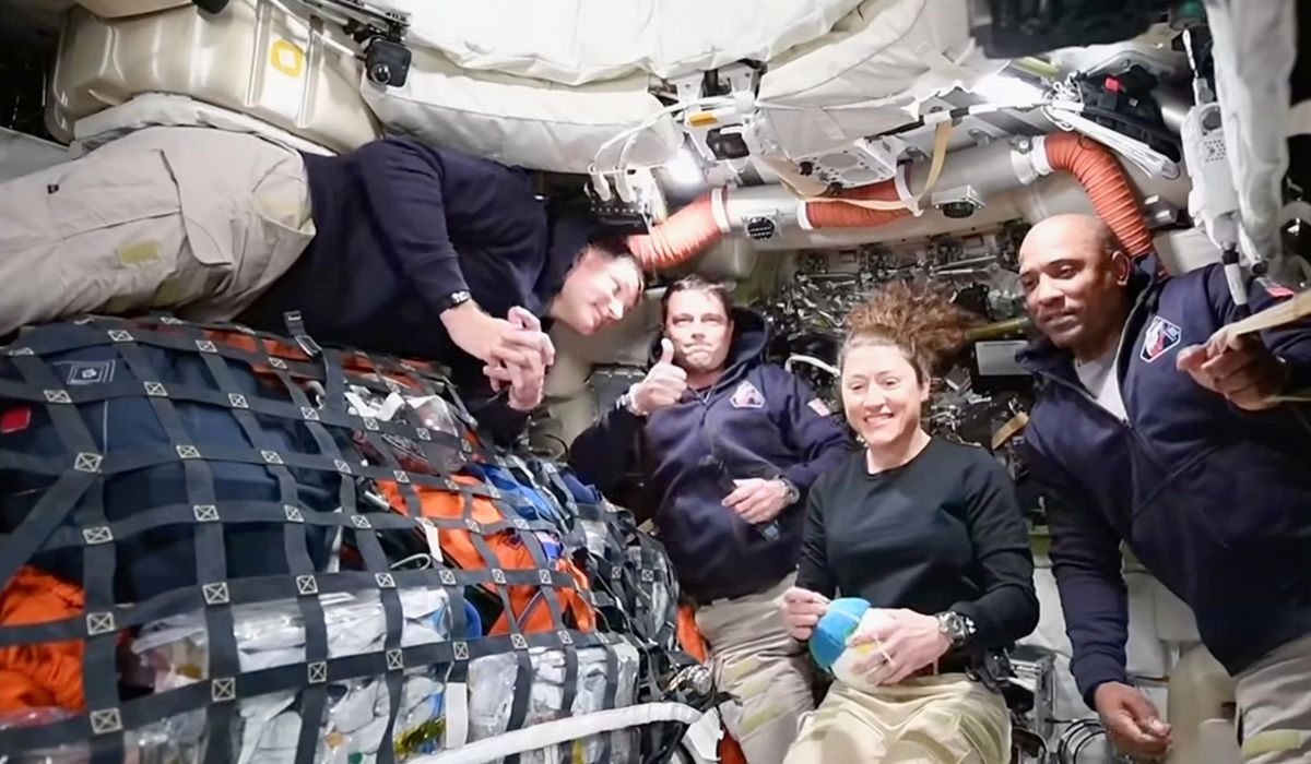 The urine pouches are serving double duty. Mission Control ordered the crew to fill a bunch of the empty bags with water from the capsule’s dispenser on Thursday. A valve issue arose with the dispenser following liftoff, and NASA wanted plenty of drinking water on hand for the crew in case the problem recurred. The astronauts used straws and syringes to fill the pouches with more than 2 gallons (7 liters) worth before pivoting to the moon.