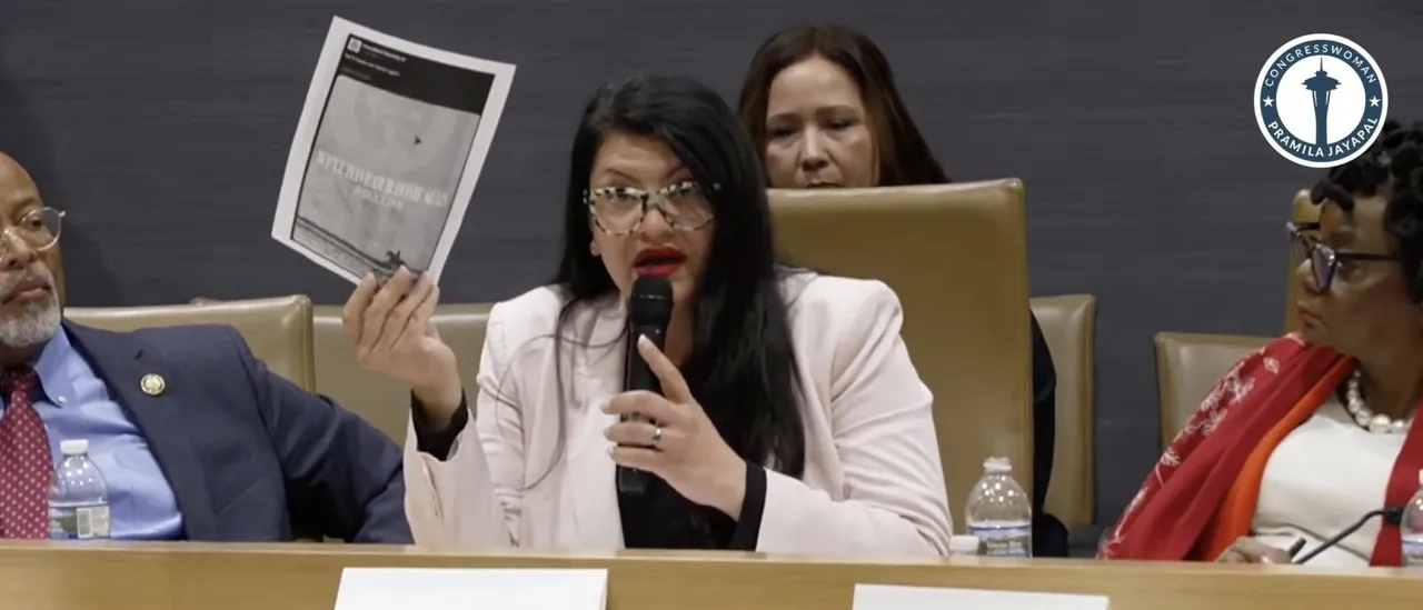 “We will have our home again,” the congresswoman said, presenting the photo. “What does that evoke in you when you see this? It literally, when I see it, as a Muslima, as a Palestinian, as a child of immigrants, I see that this is something that is evoking like I’m not welcome here.”