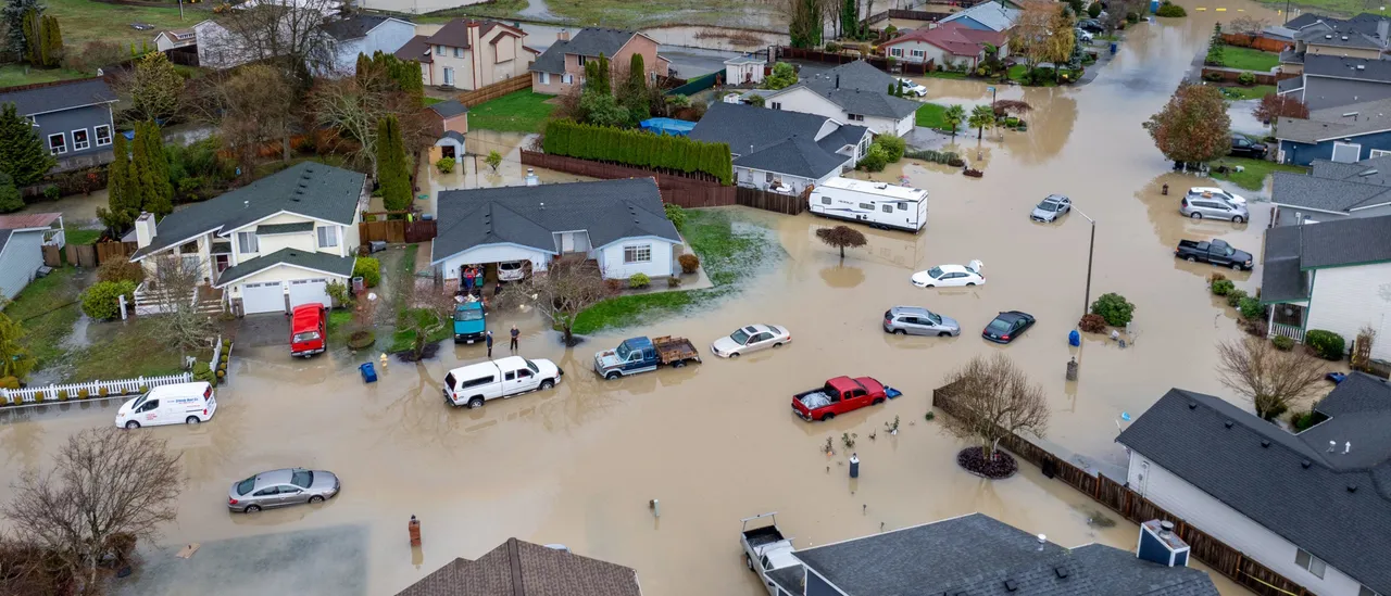 Two levee breaches in Washington caused extensive inundation, flooding entire neighborhoods and impacting more than 220 houses in the city of Pacific. Additionally, a man lost his life after driving into floodwaters on a submerged road slightly south of Snohomish.