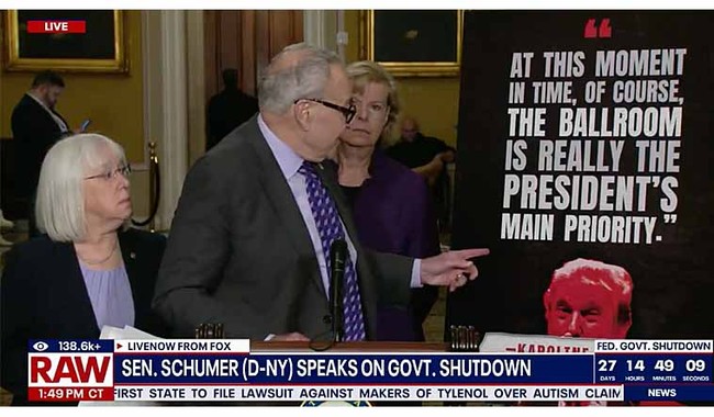 With even CNN debunking the non-story, Schumer, emerging from the 13th vote to keep the government shut down, showed off his new poster that he had a staffer run down to whatever used to be called Kinko’s and have made. Now he is using visual aids to spread the hoax, four days later.