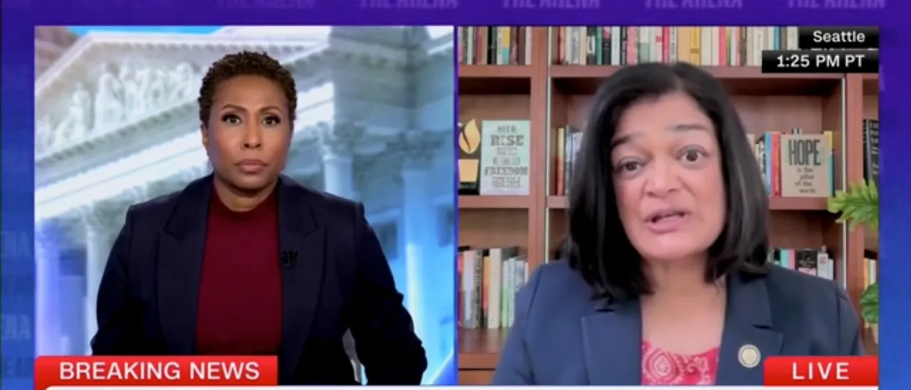Left-wing rioters interrupted an evangelical church service during a Sunday livestream after claiming a pastor had ties to Immigration and Customs Enforcement (ICE). Asked whether crossing into a place of worship goes too far, Jayapal said on “The Arena with Kasie Hunt” that she had not reviewed the full video but maintained that nearly all demonstrators act peacefully.