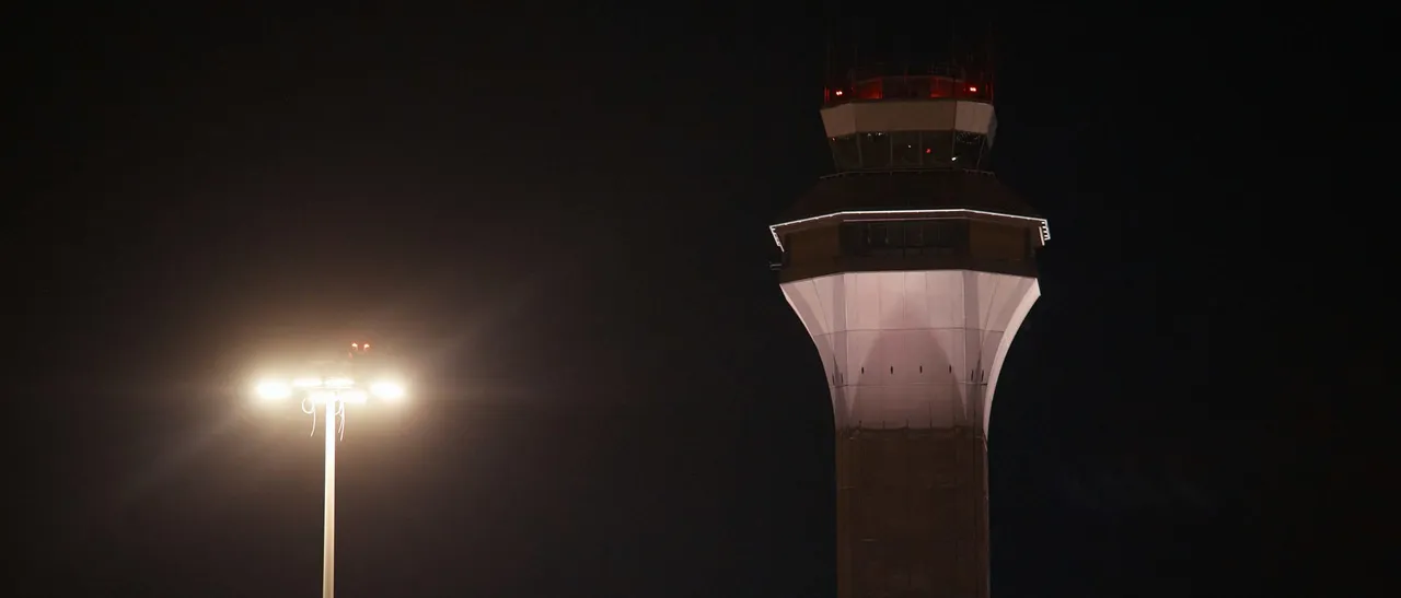 NEWARK, NEW JERSEY – NOVEMBER 6: A control tower operates at Newark Liberty International Airport on November 6, 2025 in Newark, New Jersey. Federal Aviation Administrator Bryan Bedford has announced that the FAA will be reducing flights by 10 percent in 40 major airports around the country in an effort to keep airspace safe amid staffing shortages due to the government shutdown. (Photo by Andres Kudacki/Getty Images)