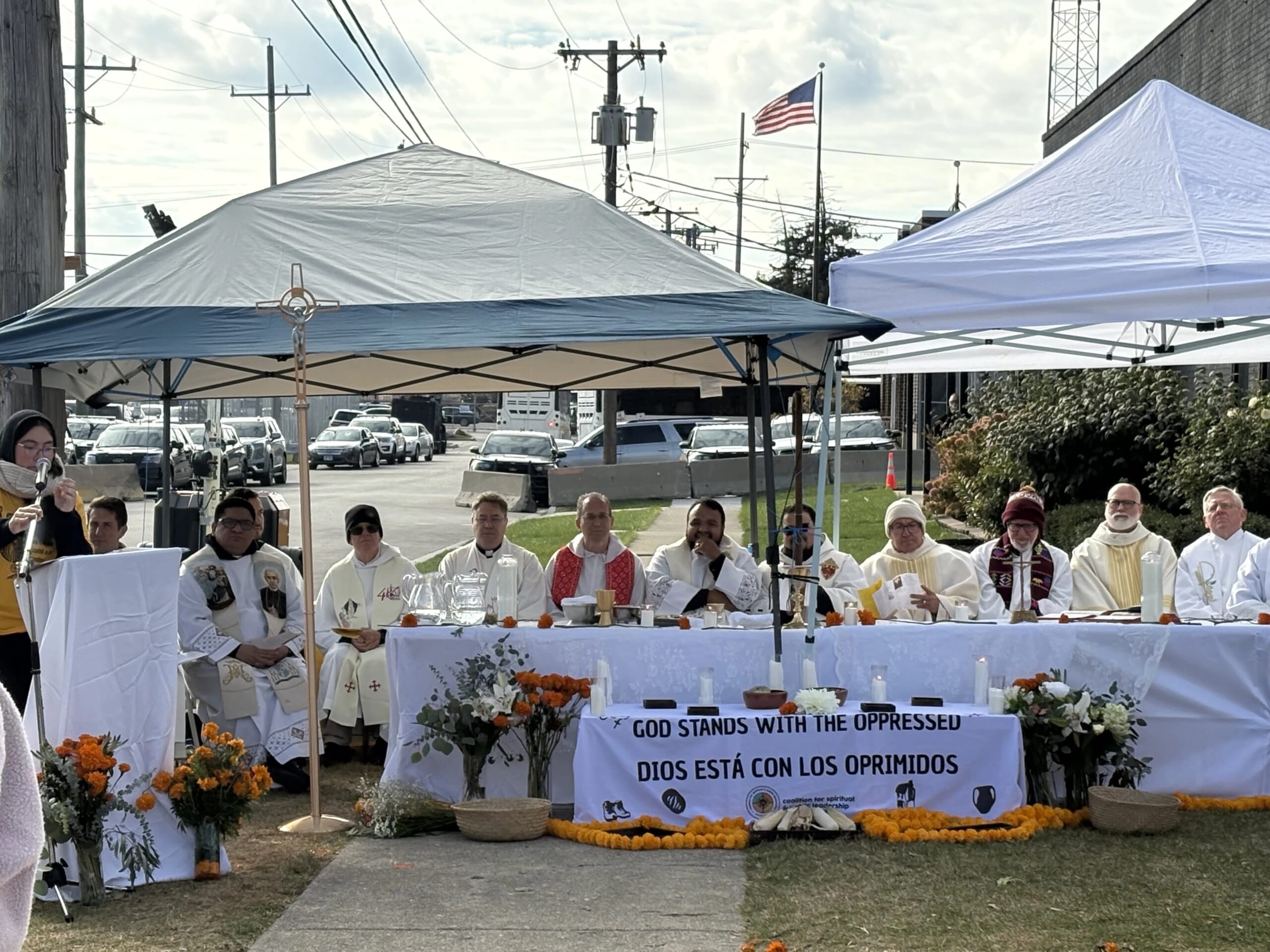 Bishop Jose María García-Maldonado celebrated a Mass Nov. 1 outside the Broadview facility in Chicago where immigration advocates allege federal authorities inhumanely treat detainees.
