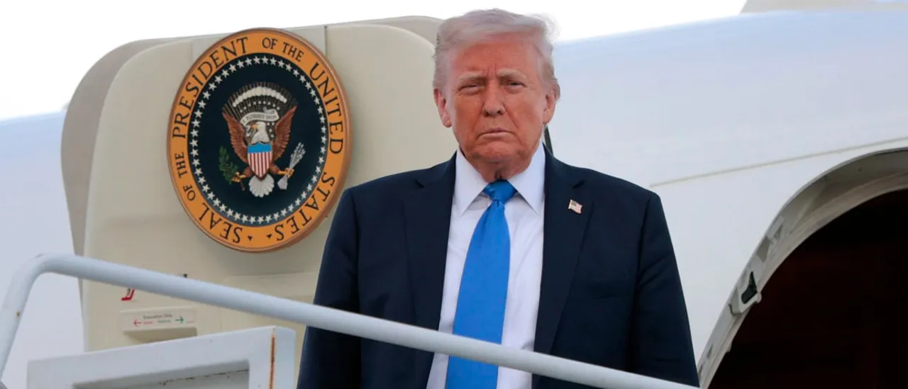 JOINT BASE ANDREWS, MARYLAND – NOVEMBER 09: U.S. President Donald Trump gives brief remarks to members of the press after exiting Air Force One on November 9, 2025 at Joint Base Andrews, Maryland. Trump spent the weekend at his Mar-A-Lago estate in Palm Beach, Florida. (Photo by Tasos Katopodis/Getty Images)
