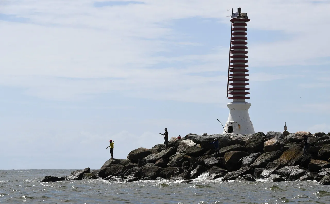 Fishermen fish while rescue teams search for victims of a shipwreck in Guiria, Venezuela on December 18, 2020. – At least 28 Venezuelan migrants died when a boat heading for Trinidad and Tobago sank, Attorney General Tarek William Saab said on Thursday. (Photo by YURI CORTEZ/AFP via Getty Images)
