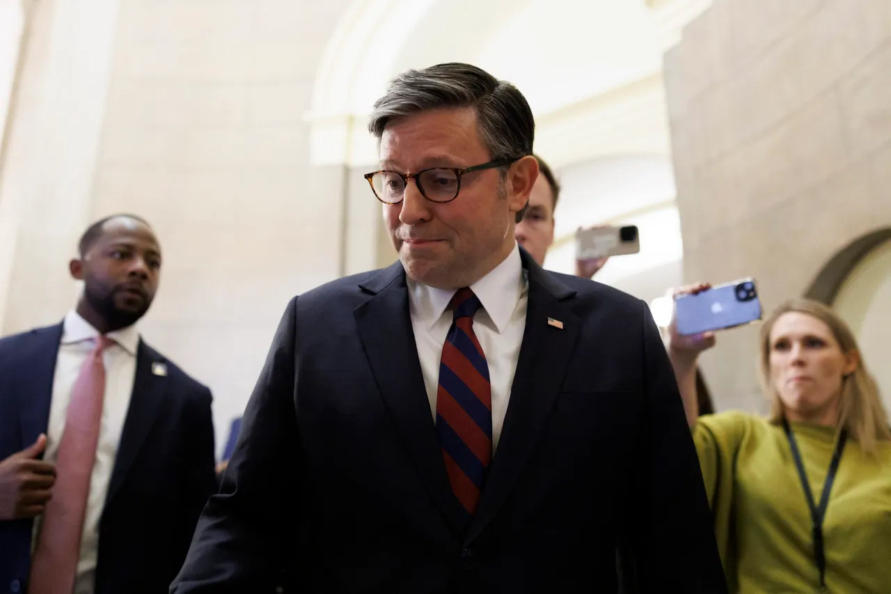 WASHINGTON, DC – NOVEMBER 5: House Speaker Mike Johnson (R-LA) speaks to reporters while walking to his office on November 5, 2025 on Capitol Hill in Washington, DC. The record for longest shutdown in the U.S. Government was broken Wednesday as it entered its 36th day. (Photo by Tom Brenner/Getty Images)
