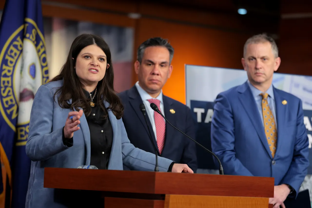 WASHINGTON, DC – FEBRUARY 06: U.S. Rep. Haley Stevens (D-MI), joined by fellow House Democrats, speaks at a press conference at the U.S. Capitol on February 06, 2025 in Washington, DC. (Photo by Kayla Bartkowski/Getty Images)