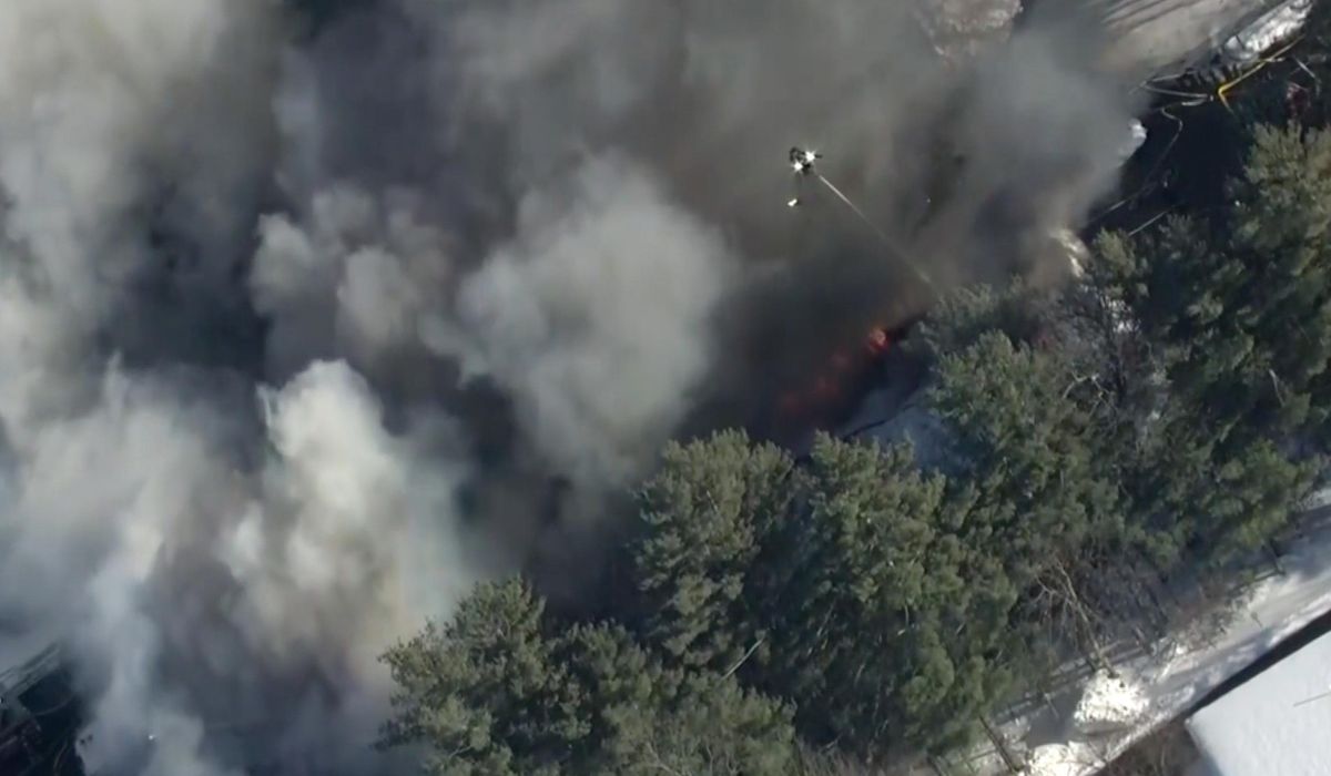 The blast appeared to have obliterated at least part of the building, with aerial footage from WCBV-TV showing flames and smoke billowing from the rubble. Bits of wreckage appeared to be scattered in the snow and a parking lot in front of the facility.