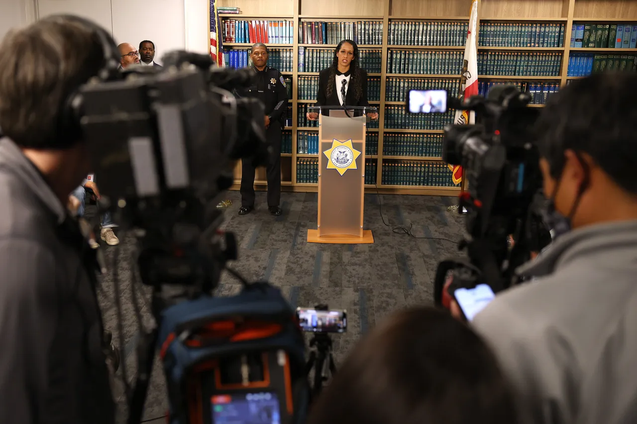 SAN FRANCISCO, CALIFORNIA – OCTOBER 31: San Francisco district attorney Brooke Jenkins speaks during a news conference on October 31, 2022 in San Francisco, California. Jenkins announced state level charges against David Wayne DePape who attacked Paul Pelosi, husband of U.S. Speaker of the House Nancy Pelosi, after breaking into their home. DePape is being charged with attempted murder, residential burglary, assault with a deadly weapon, elder abuse, false imprisonment of an elder and threats to a public official and their family. The U.S. attorney has also filed federal charges against DePape. (Photo by Justin Sullivan/Getty Images)