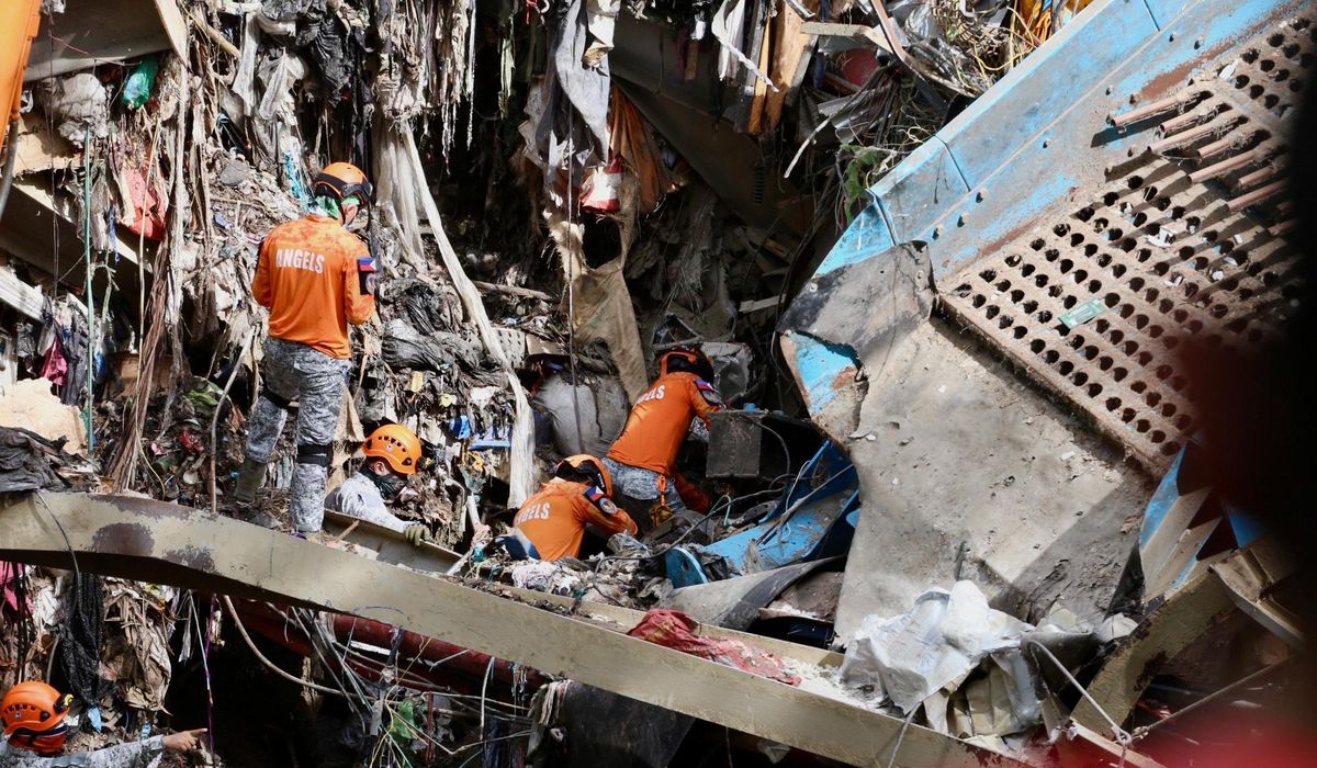 Dozens of rescuers including police, firefighters and disaster-response personnel have raced against time to find more survivors in dangerous conditions in the rubble of twisted tin roofs, iron bars and combustible heaps of garbage and debris.