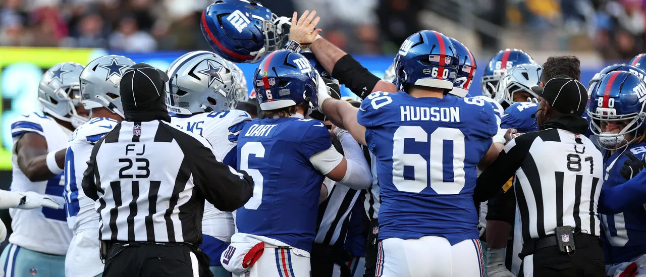 Shortly after New York Giants quarterback Jaxson Dart threw a touchdown pass to his running back Tyrone Tracy Jr. at the start of the third quarter Sunday, a scuffle broke out involving pushes and punches between members of the Dallas defense and the New York offense.