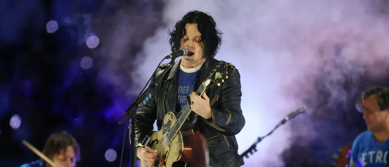 DETROIT, MICHIGAN – NOVEMBER 27: Jack White performs during the halftime show of the game between the Green Bay Packers and the Detroit Lions at Ford Field on November 27, 2025 in Detroit, Michigan. (Photo by Gregory Shamus/Getty Images)