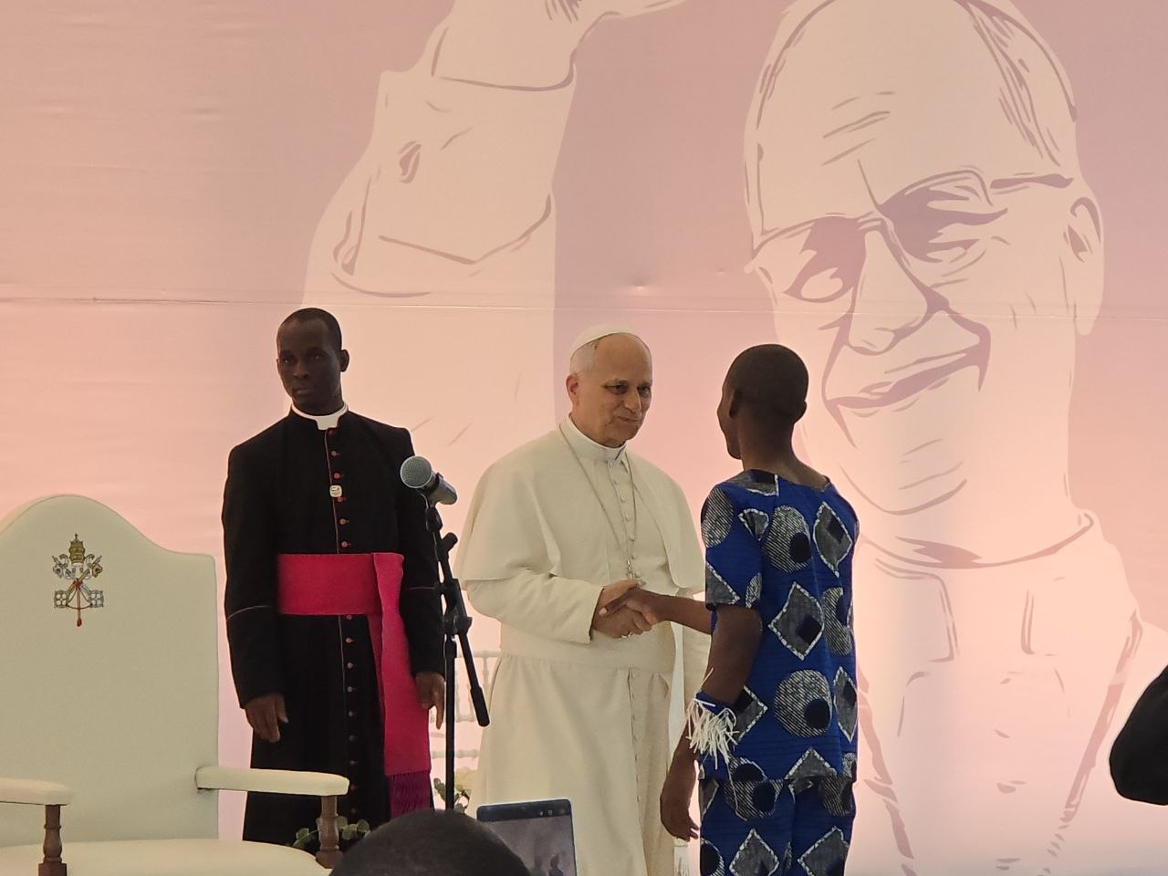 The pontiff was welcomed by the hospital’s director, Bechir Ben Hadj Ali, and the facility’s deputy director, who presented him with a bouquet of flowers. Together they proceeded to the main courtyard, where patients and staff had gathered.