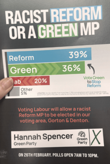 The Green Party ground campaign is targeting local schools this week in Gorton & Denton. Their campaign organisation is a little rusty, though…