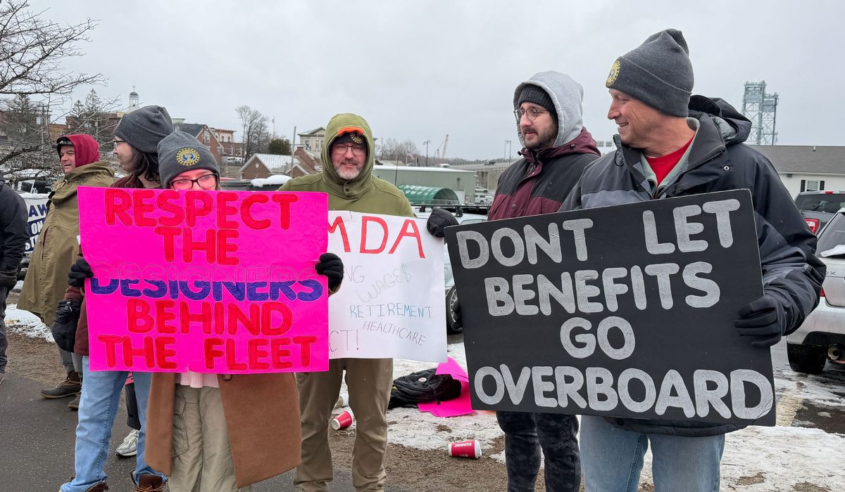 The Bath Marine Draftsmen’s Association went on strike at General Dynamics Bath Iron Works after members voted to reject the shipyard’s proposed wage offer over the weekend. The union represents 627 workers at the historic shipyard, which has built naval ships in Bath for more than a century.