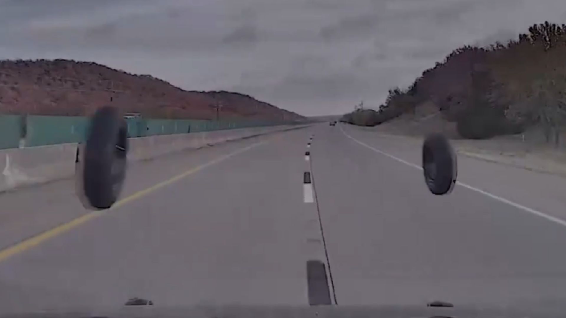 OHP noted concerns about roadway safety and cited previous incidents in which loose tires caused injuries and fatalities. In this case, only the OHP unit was damaged.
