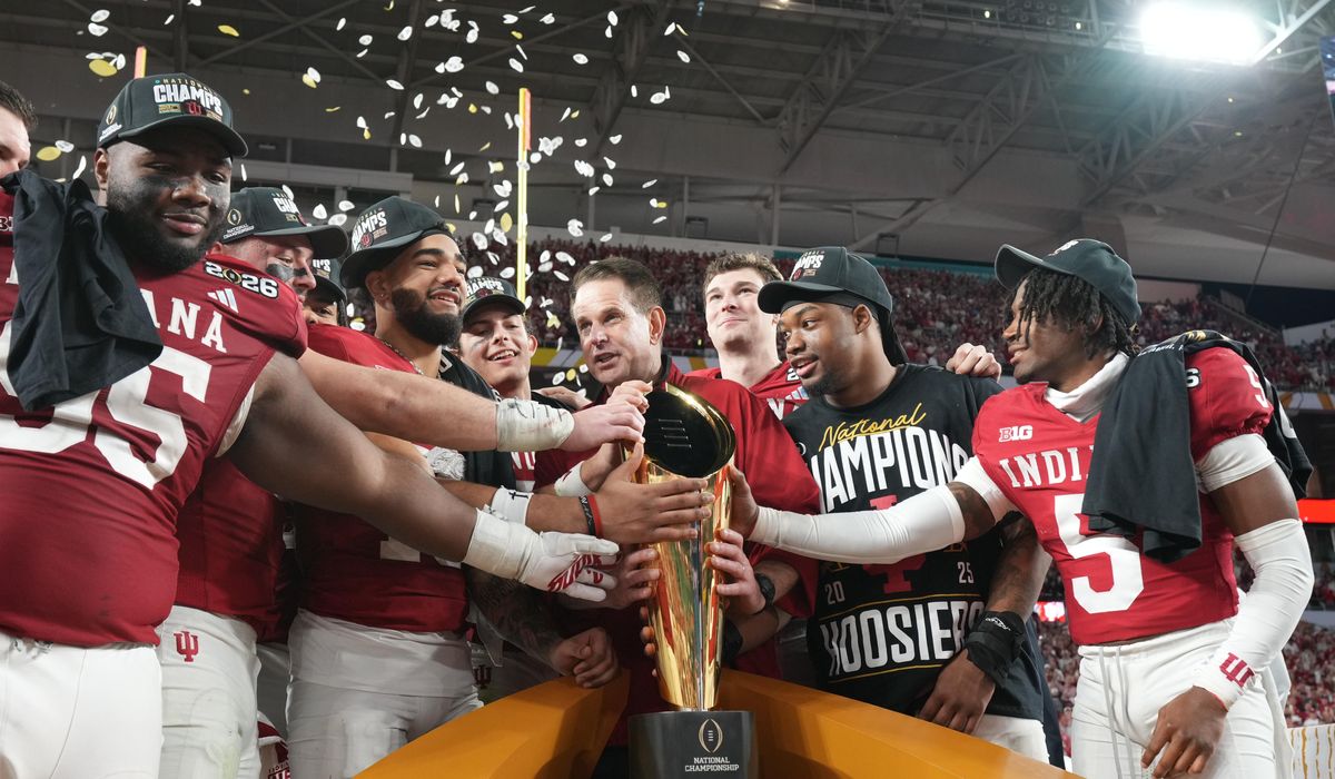 The College Football Playoff trophy now heads to the most unlikely of places: Bloomington, Indiana – a campus that endured a nation-leading 713 losses over 130-plus years of football before Cignetti arrived two years ago to embark on a revival for the ages.