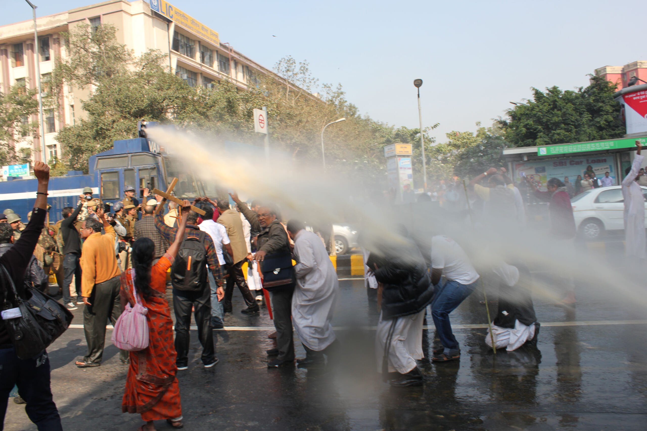 During a 2013 march to Parliament, police in New Delhi sprayed dirty water from water cannons on protesting priests in cassocks and other Dalit Christian demonstrators — images that Dalit Christian advocates say illustrate the institutional bias against their cause.