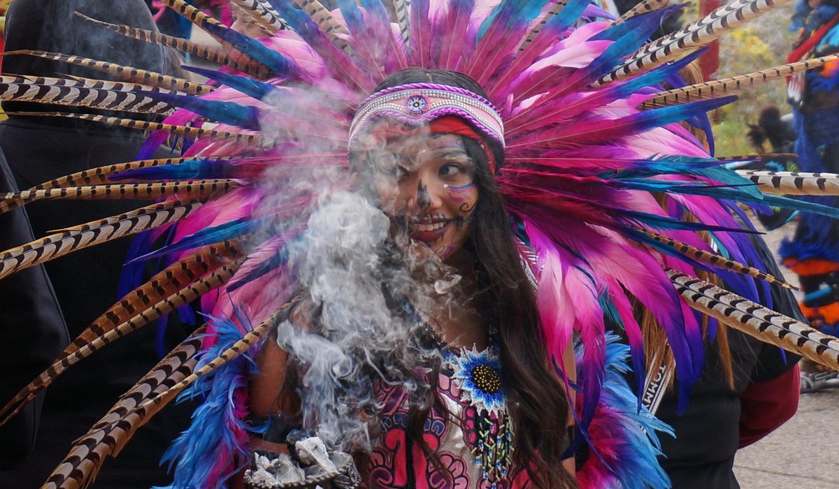 “We try to keep our sources of spiritual strength always nourished,” said Susana De Leon, one of the traditional Aztec dancers who got the commemoration started at El Colegio. “When the community sees us dancing, they feel strengthened. They feel the love.”