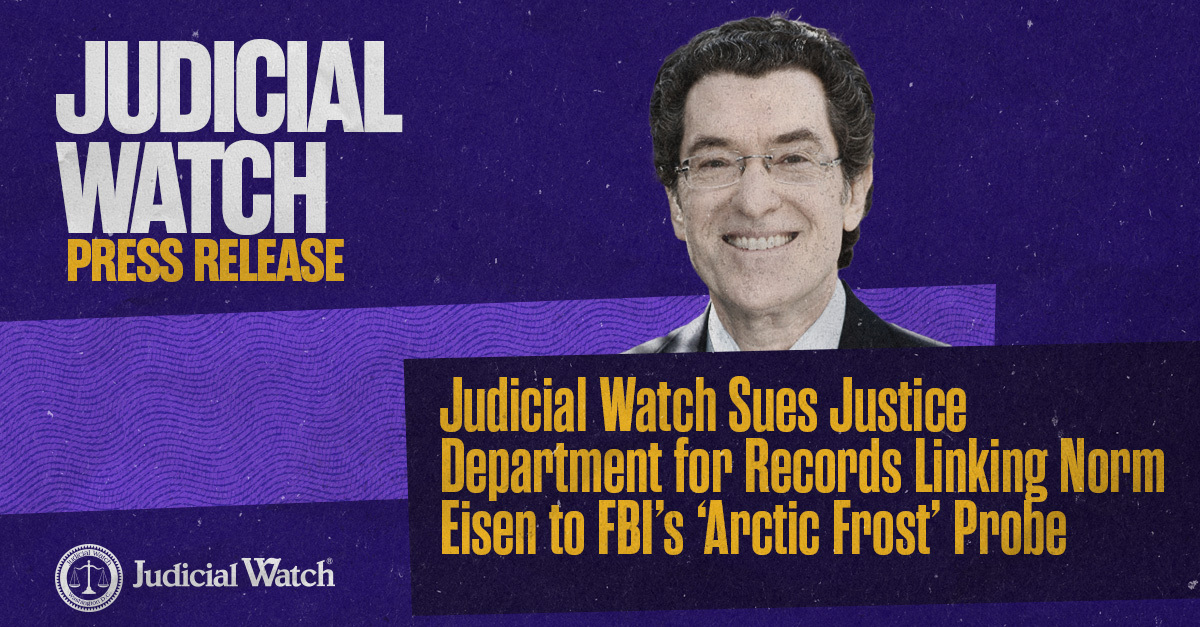 (Washington, DC) – Judicial Watch announced today that it filed a Freedom of Information Act (FOIA) lawsuit against the U.S. Department of Justice for all records linking Norm Eisen to the FBI’s Biden-era “Arctic Frost” probe, specifically involving the Criminal Division, the Office of Information Policy, Attorney General Merrick Garland, Deputy Attorney General Lisa Monaco and Special Counsel Jack Smith’s team (Judicial Watch, Inc. v. U.S. Department of Justice (No. 1:26-cv-00746)).