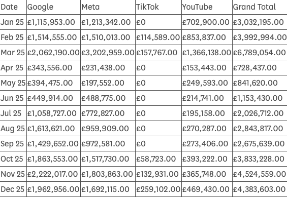The HM UK Government spent an eye-watering £36,825,288 of taxpayer cash on social media advertising in 2025. Got to keep the people updated on those U-turns somehow…