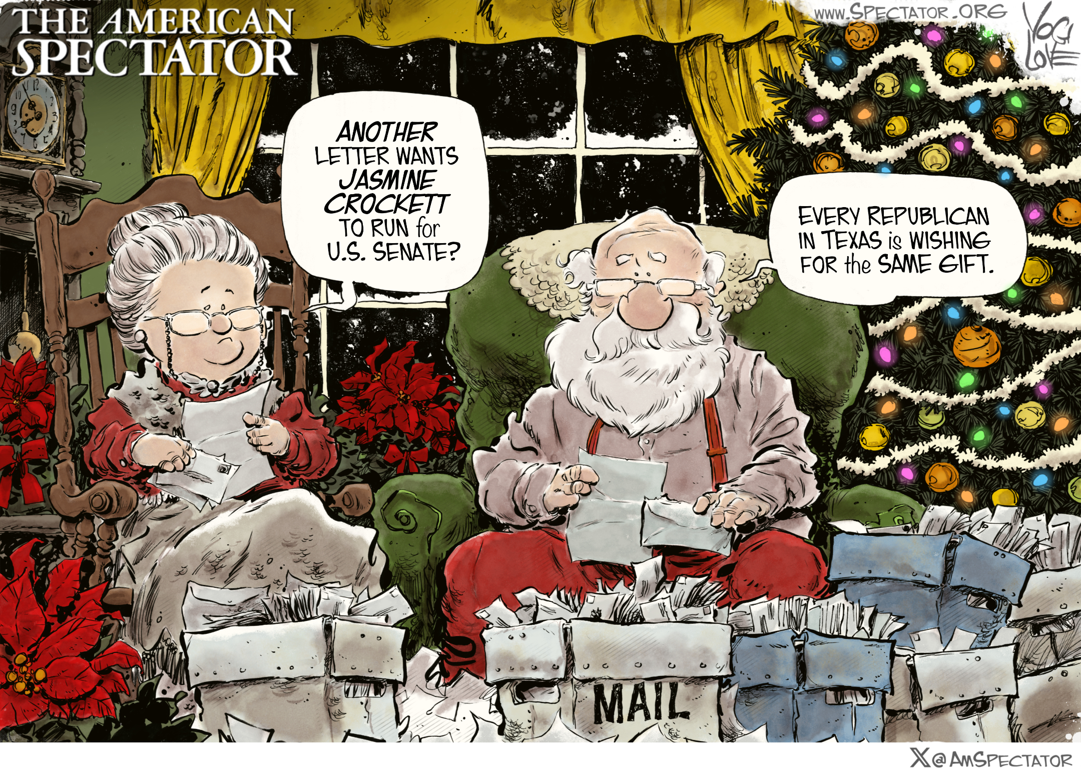 “Letters to Santa,” editorial cartoon by Yogi Love for The American Spectator on Dec. 18, 2025.