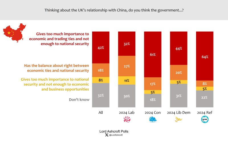 Voters were more than twice as likely to think the government gives too much importance to economic ties with China and not enough to national security than the reverse. 2024 Labour voters also tended to think this was the case, but by a smaller margin.