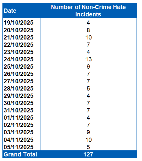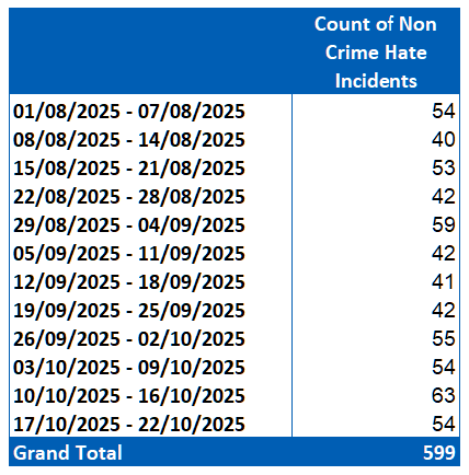 Data obtained by Guido’s FOI Unit shows that from the 1st of August to the date of the announcement on 20 October the Met was recording an average of 50 non-crime hate incidents per week, as the below chart displays: