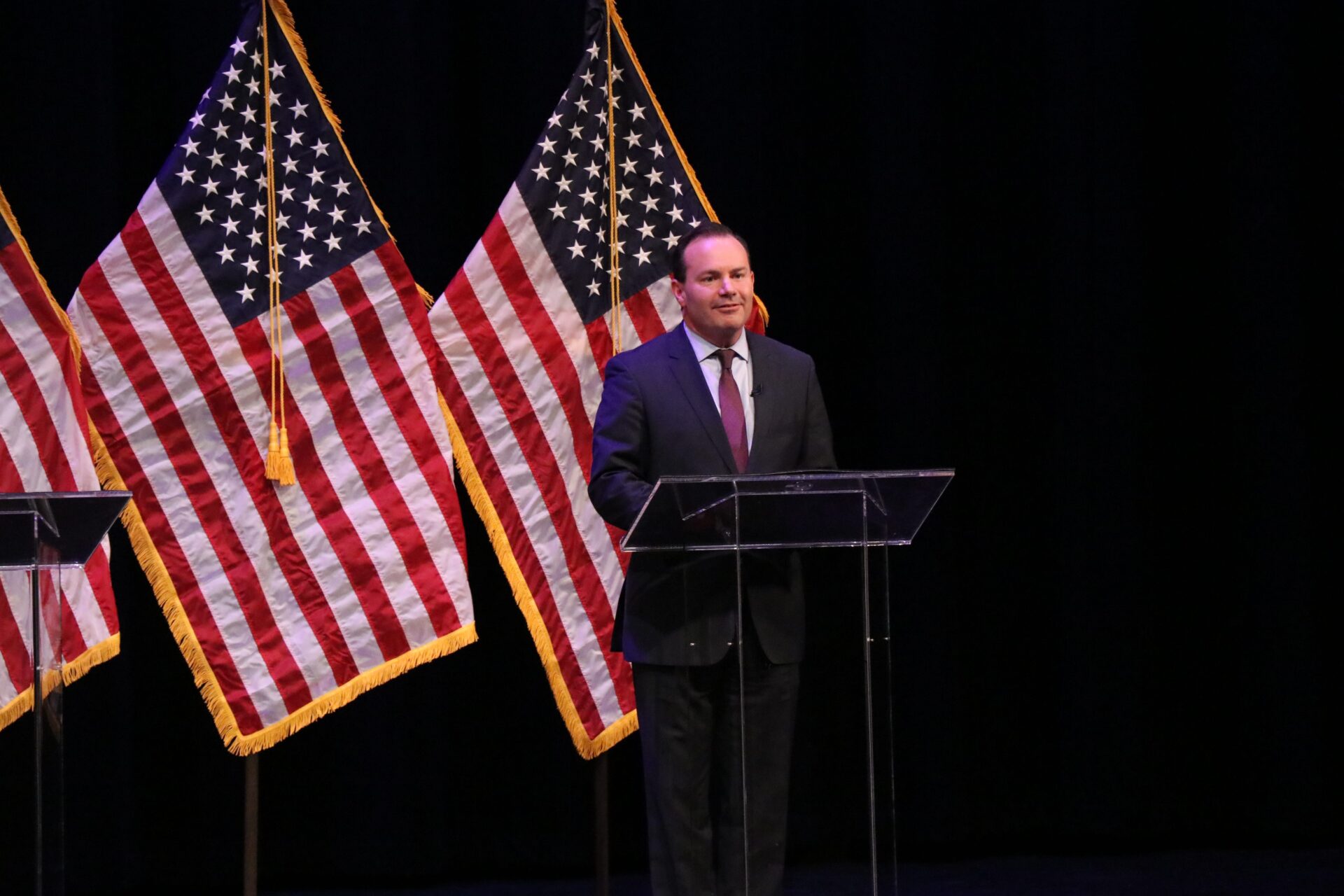 Sen. Mike Lee is seeking re-election and is one of three Republican candidates seeking to represent Utah for a term in the U.S. Senate debated her two opponents on Wednesday night at the Draper Park Middle School. June 1, 2022.