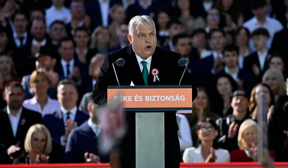 He described the elections in 28 days as a “crossroads” for the country’s future, and repeatedly took aim at the EU and Ukraine, comparing them to invading forces from Hungary’s history.