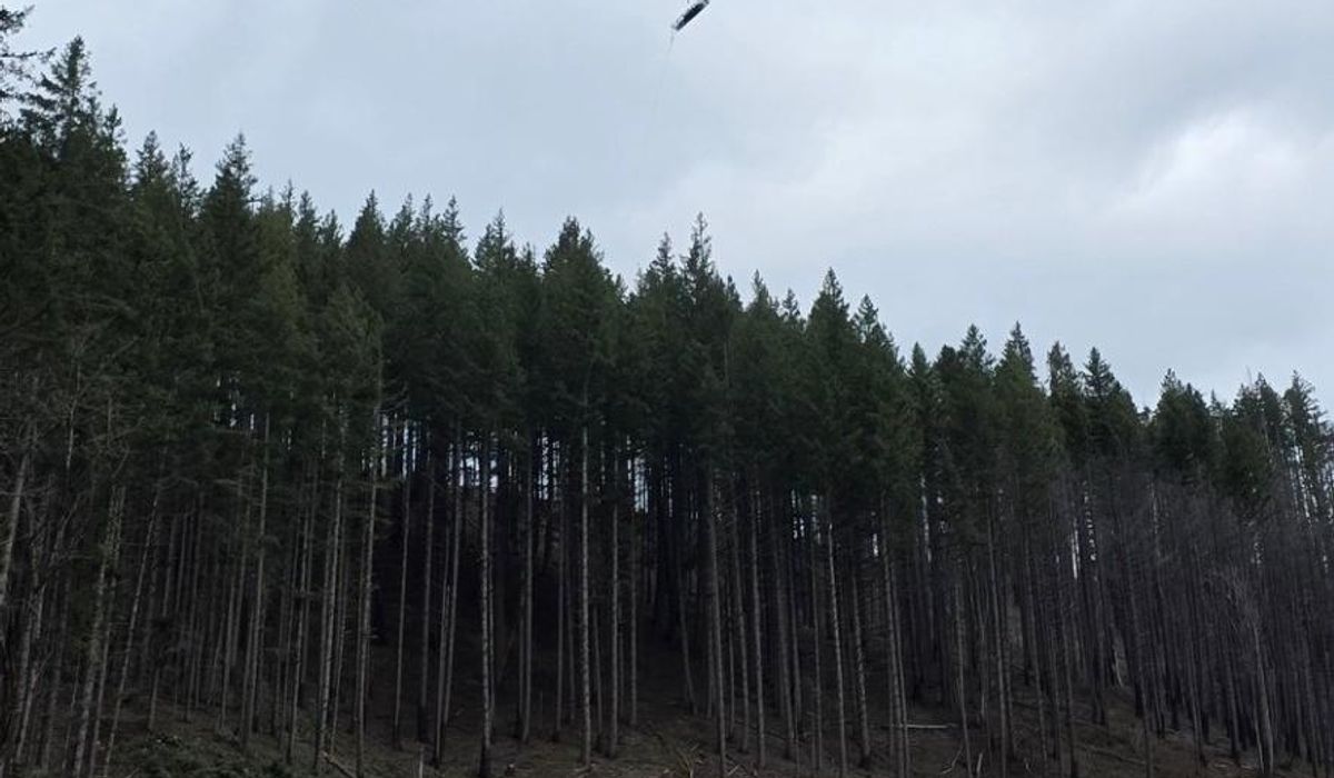 A ground extraction would have been dangerous and time consuming, so the Oregon Army National Guard responded with an HH-60 Black Hawk helicopter. The logger was placed in a basket, which was hoisted about 200 feet (61 meters) into the air to the helicopter. The logger was brought to a local hospital and reported in stable condition.