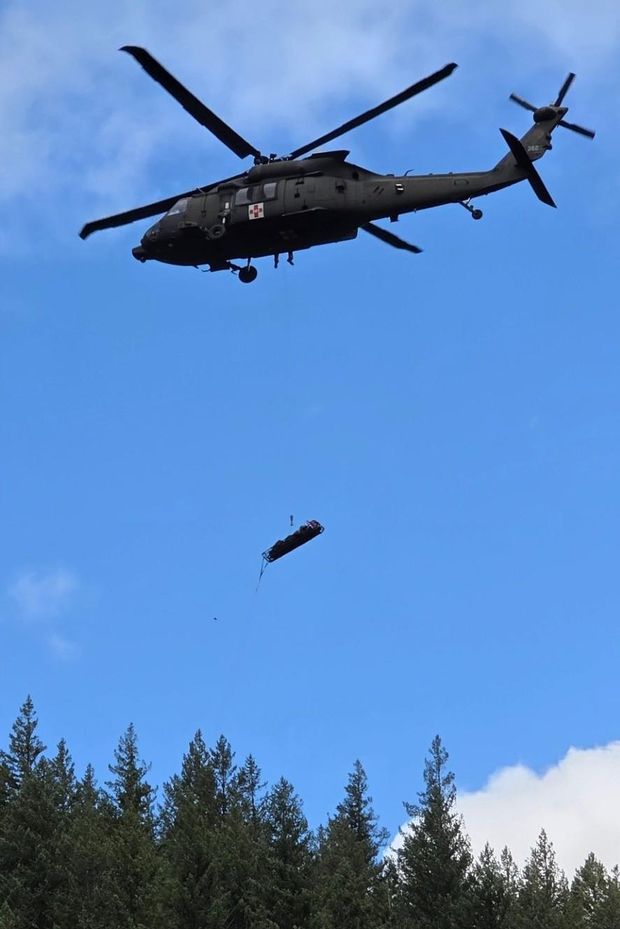 MOUNT HOOD NATIONAL FOREST, Oregon — An Oregon Army National Guard helicopter safely hoisted an injured logger from a remote national forest after steep, rugged terrain prevented other means of rescue, fire department officials said.
