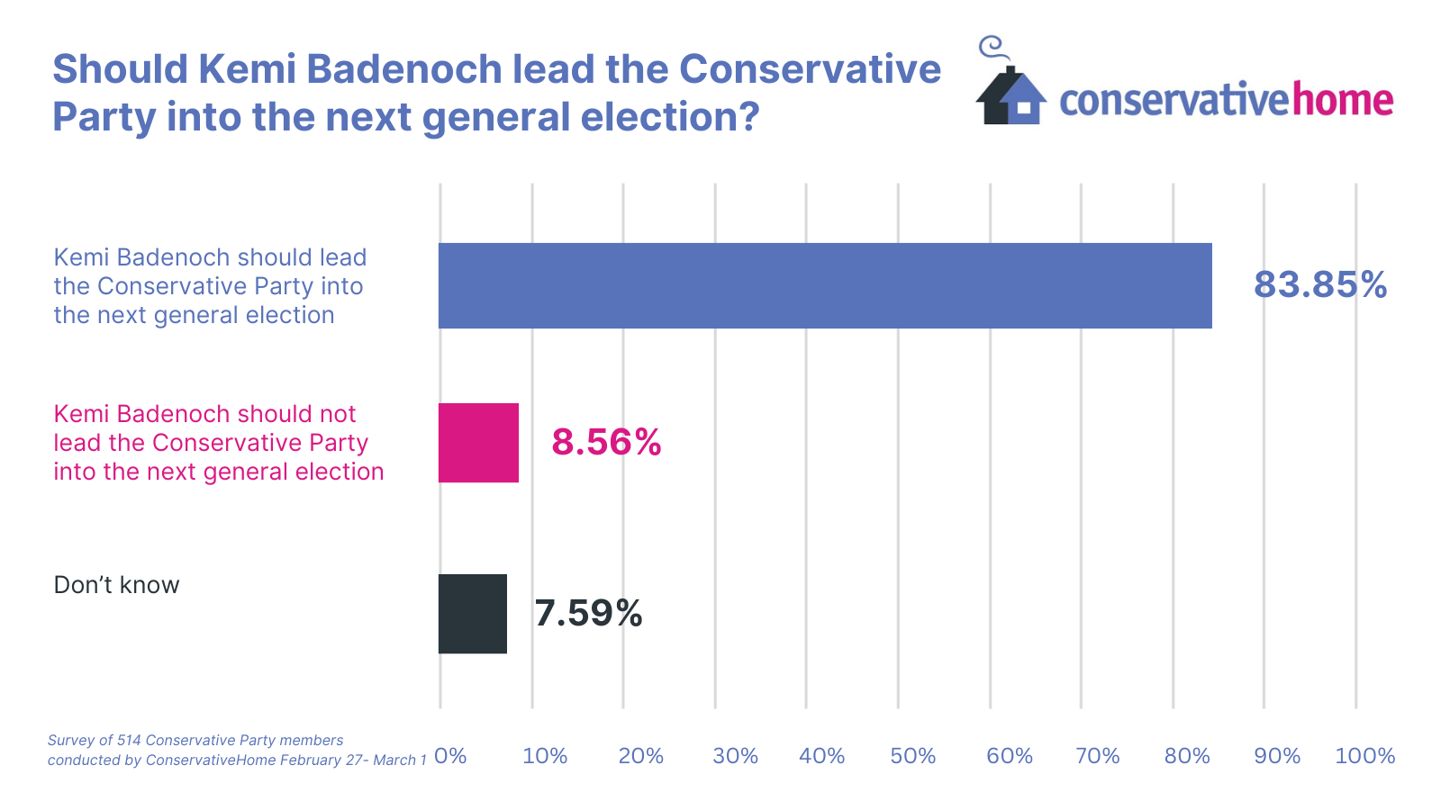It is no secret that Kemi Badenoch didn’t have the easiest start to her time at the Tory helm. So much so that in our own ConHome survey, polling party members, the people who had elected her, she once ended up on a flat zero. The people were not satisfied.