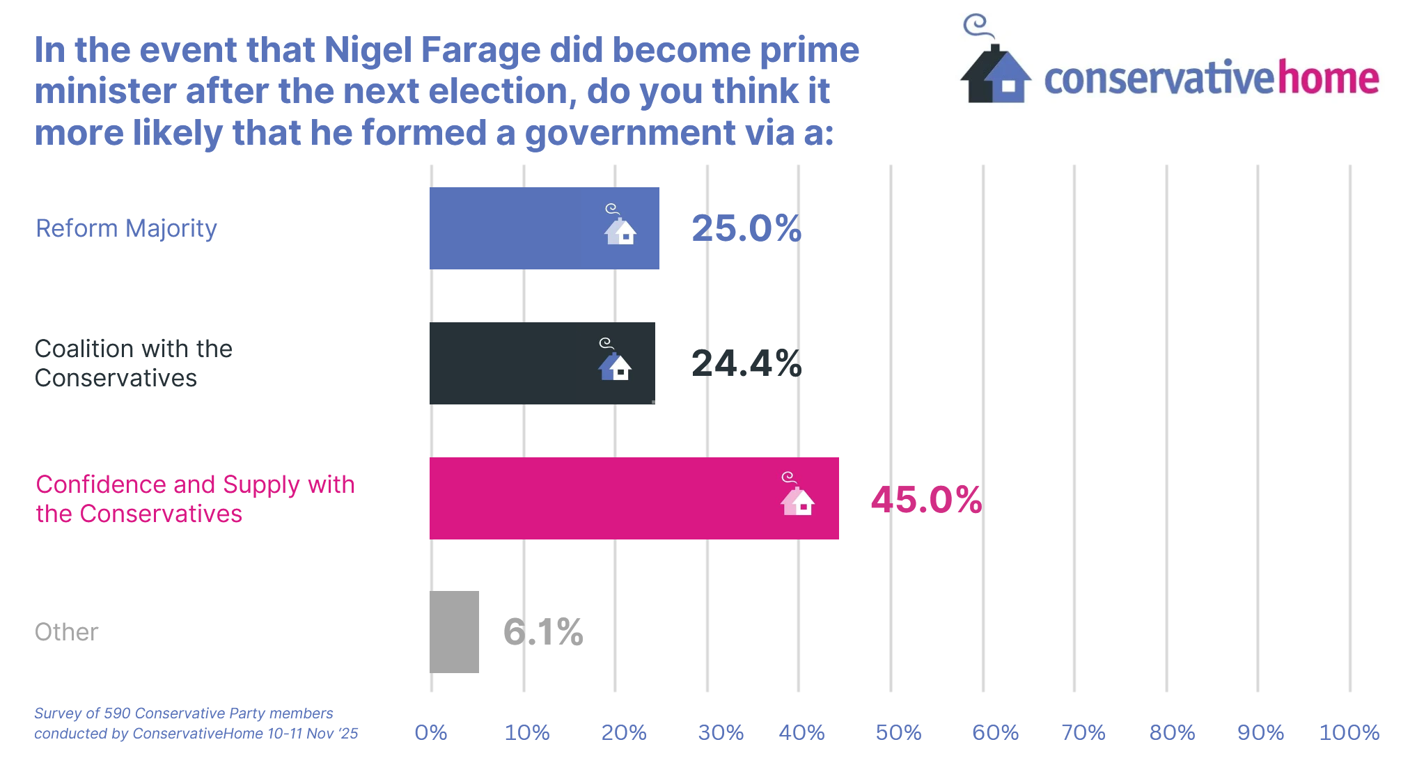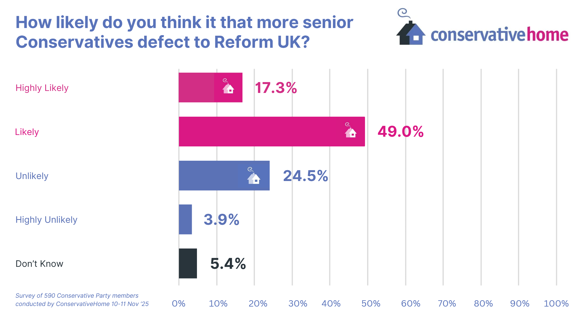 It is undoubtedly true – but like Nathan Gill’s existence don’t expect Reform to confirm it openly – that Reform had expected more Tory defections by now. Danny Kruger remains the most significant so far, but clearly our survey members think that’s the start of the process not the end.