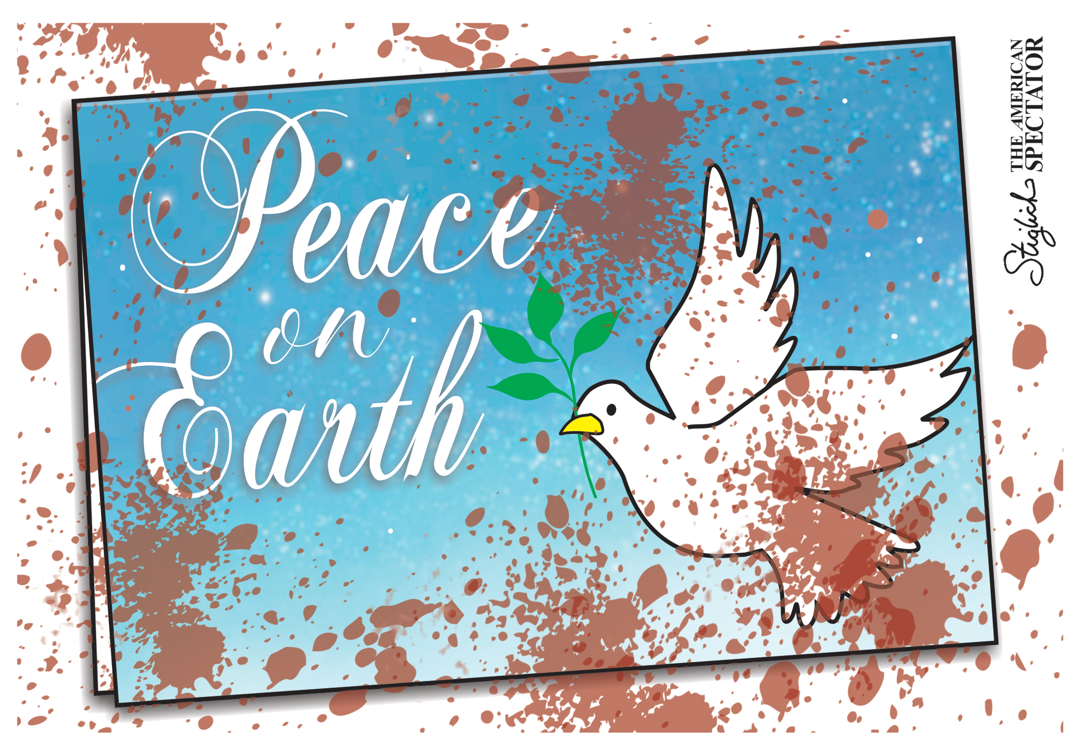 “Peace on Earth,” editorial cartoon by Tom Stiglich for The American Spectator on Dec. 16, 2025.
