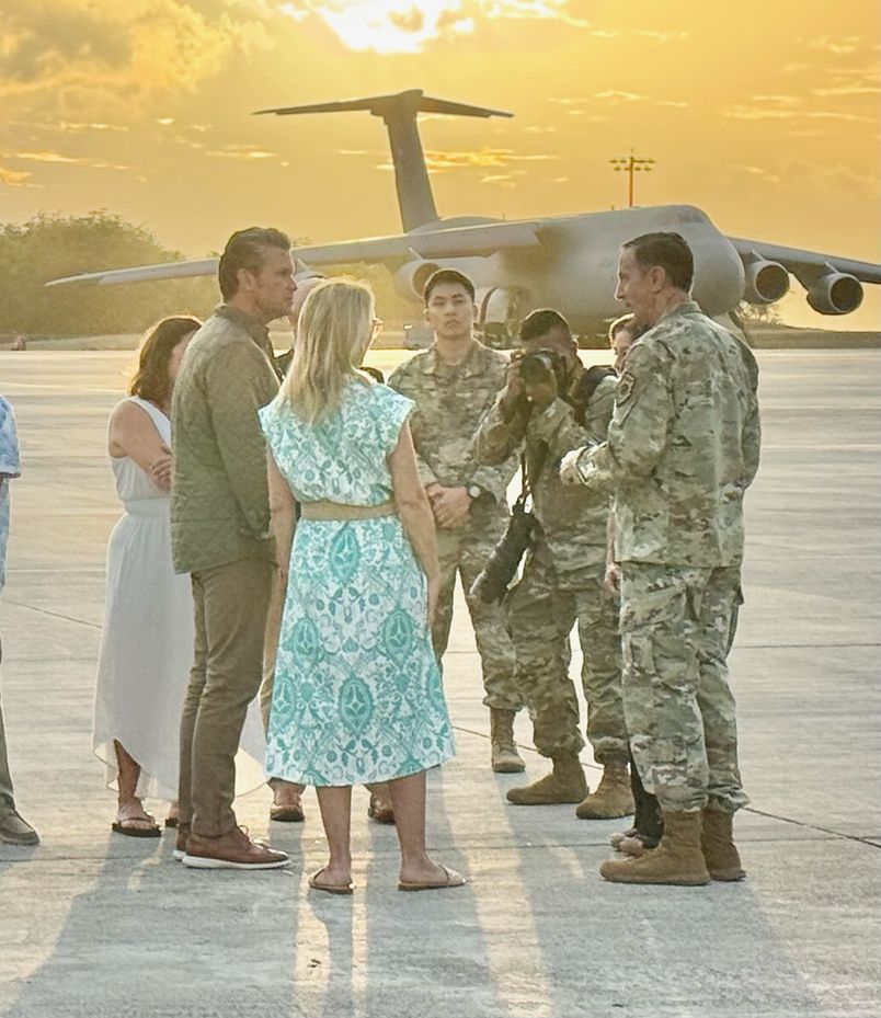 Also joining the secretary on the first leg of a four-nation tour were his wife and several of his children. The family members remained on the island after Mr. Hegseth departed for Japan at the end of the two-hour intelligence briefing.