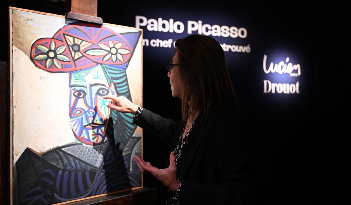 The painting, part of Picasso’s “Woman in a Hat” series, was auctioned at the Drouot auction house in Paris. Auctioneer Christophe Lucien called the final sale, to a buyer in the room, “an enormous success,” as well as a very emotional moment. He said the price – 32,012,397 euros after adding buyer fees to the 27-million hammer price – was not only well above estimates but also the highest paid at auction this year for any artwork in France.