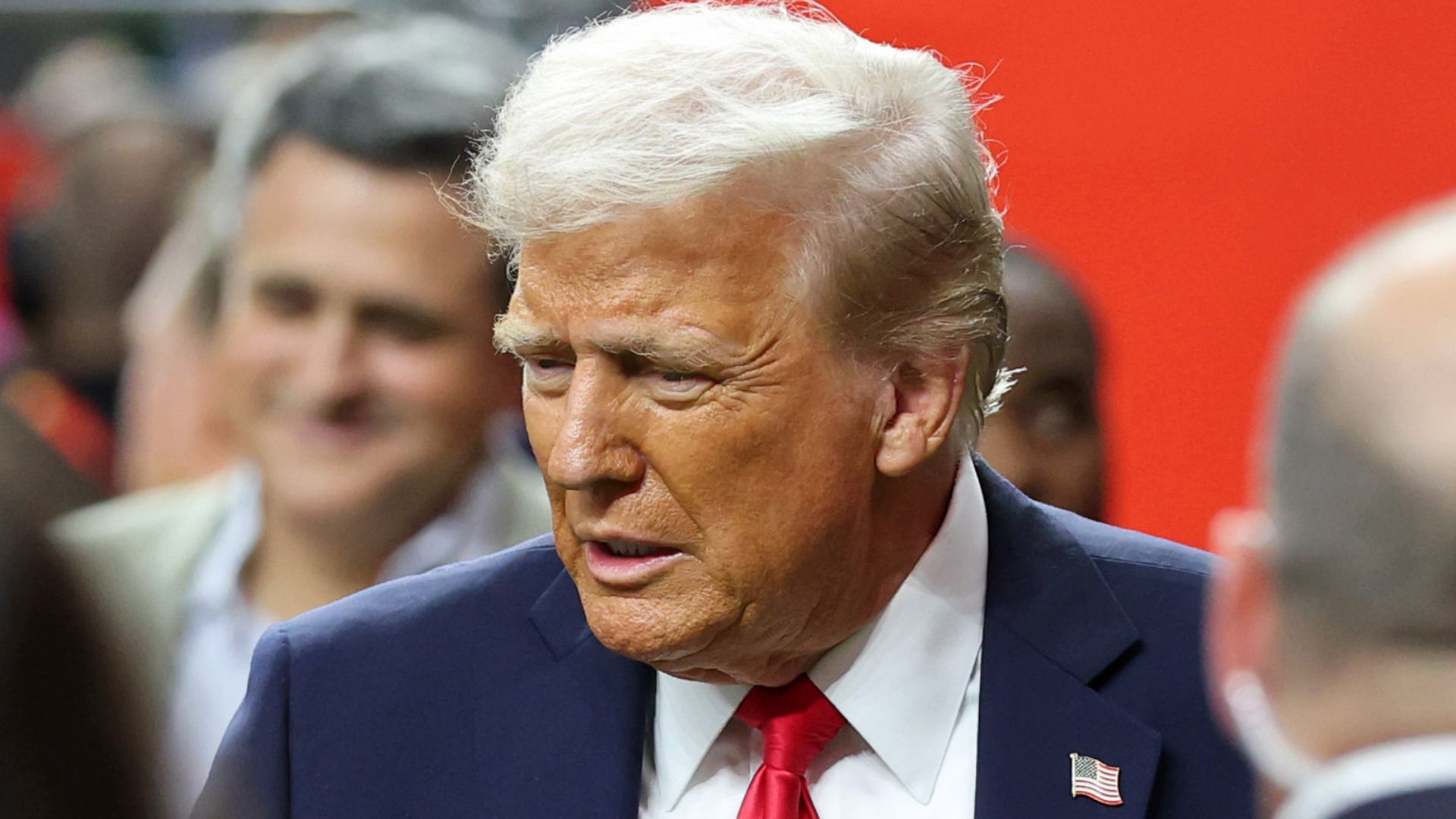 Feb 9, 2025; New Orleans, LA, USA; President Donald Trump on the sideline before Super Bowl LIX between the Philadelphia Eagles and the Kansas City Chiefs at Caesars Superdome. Mandatory Credit: Geoff Burke-Imagn Images