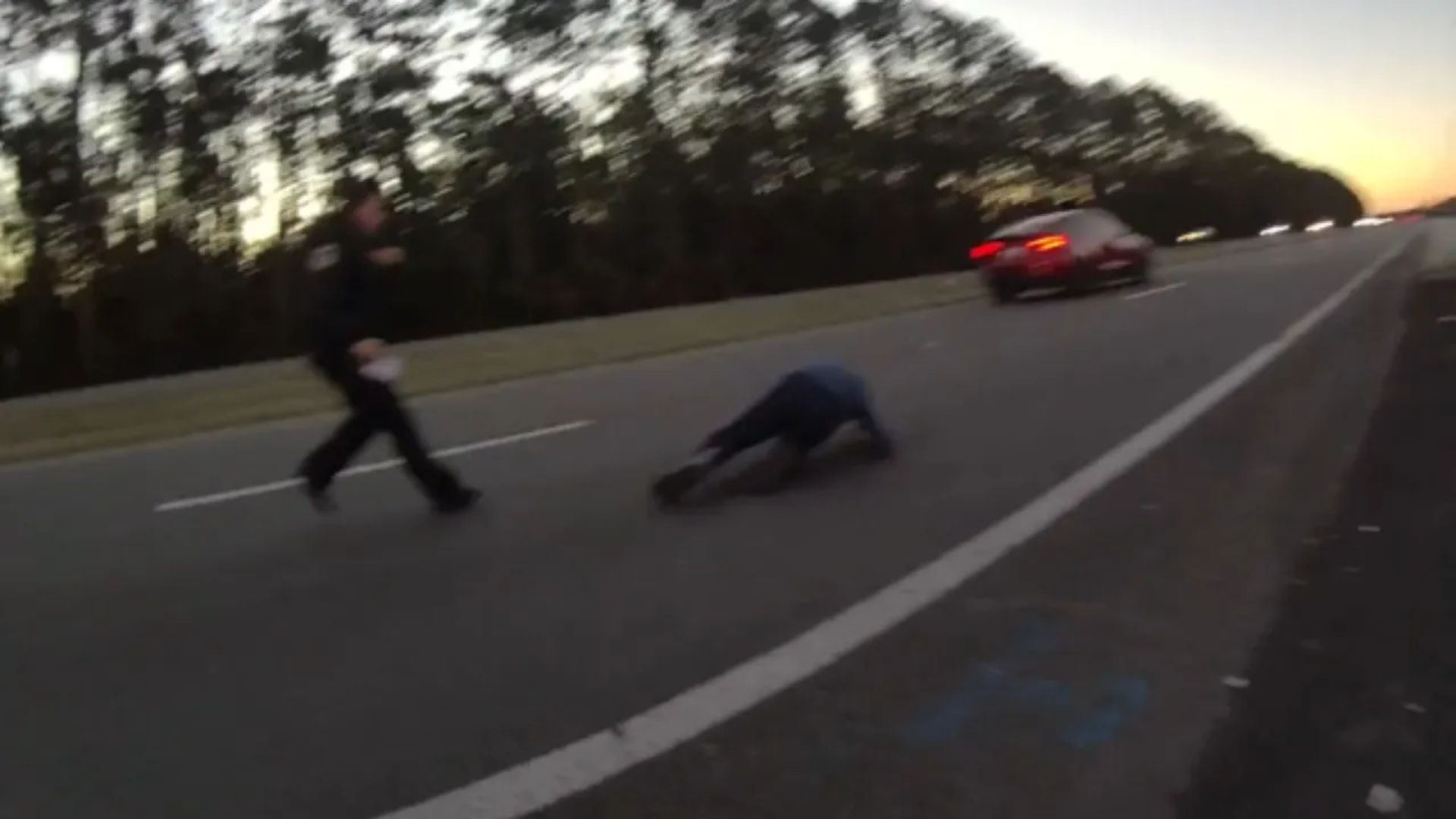 He ran and tripped into the roadway, leading to a brief physical struggle.