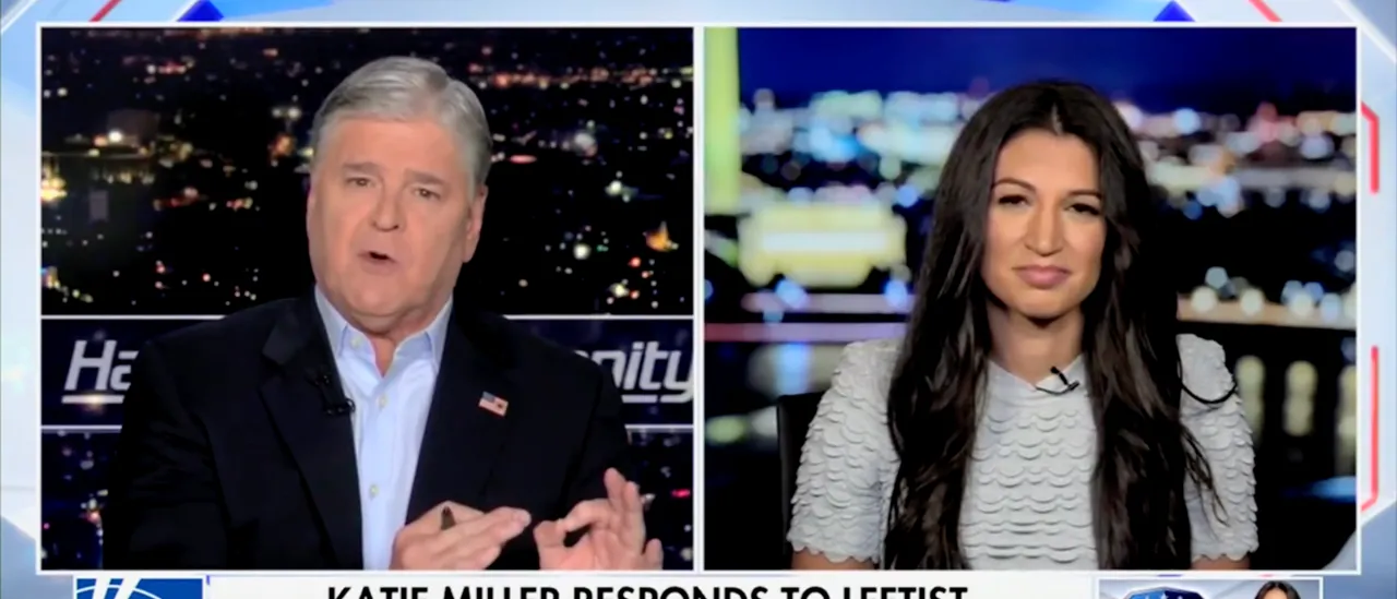 Katie Miller, the wife of White House Deputy Chief of Staff for Policy Stephen Miller, appeared on Fox’s “Hannity” Monday and said Democratic New York Rep. Alexandria Ocasio-Cortez’s “pathetic” attack on her husband is because Democrats are “flailing.”
