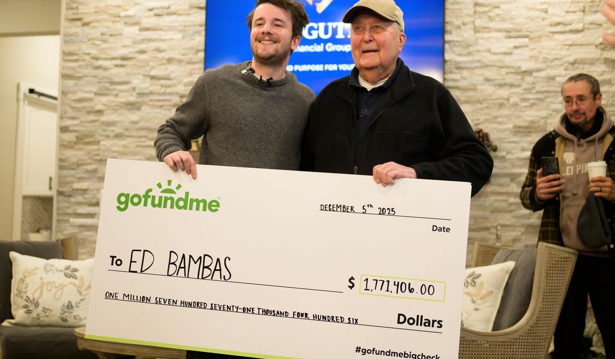 The 88-year-old Michigan grocery worker was handed an oversized check for $1.7 million Friday, the result of a remarkable fundraising campaign by a young Australian man with an extraordinary following on social media.