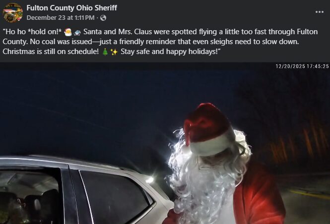 A traffic stop involving a man dressed as Santa Claus and a woman dressed as Mrs. Claus drew widespread attention after the Fulton County Sheriff’s Office in Ohio shared body-worn camera footage of the encounter from Dec. 20.