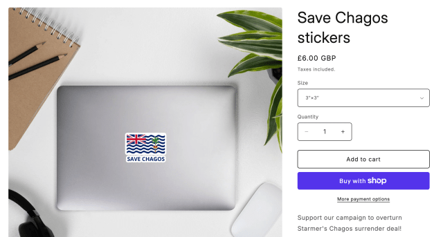 Our Save Chagos T-shirts are flying off the shelves. To support the campaign, we’re now also offering stickers starting £6. They are available in two sizes. Click the link here to buy yours now and browse the rest of the Guido Fawkes store…