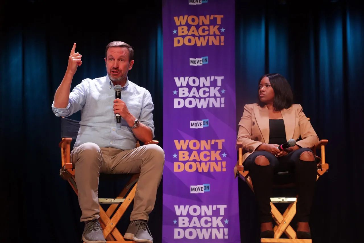 PHOENIX, ARIZONA – AUGUST 03: U.S. Senator Chris Murphy and Rep Jasmine Crockett speak during the Won’t Back Down event at The Van Buren on August 03, 2025 in Phoenix, Arizona. (Photo by John Medina/Getty Images for MoveOn)