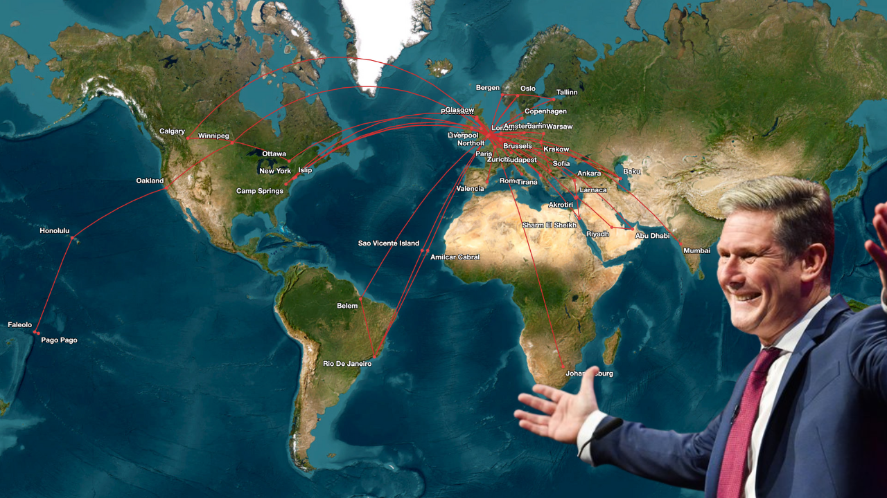 Guido has itemised each airport Starmer has visited – usually in the large Airbus A321-251NX(LR) – and presents his trip as a map. Indiana Jones would be proud…