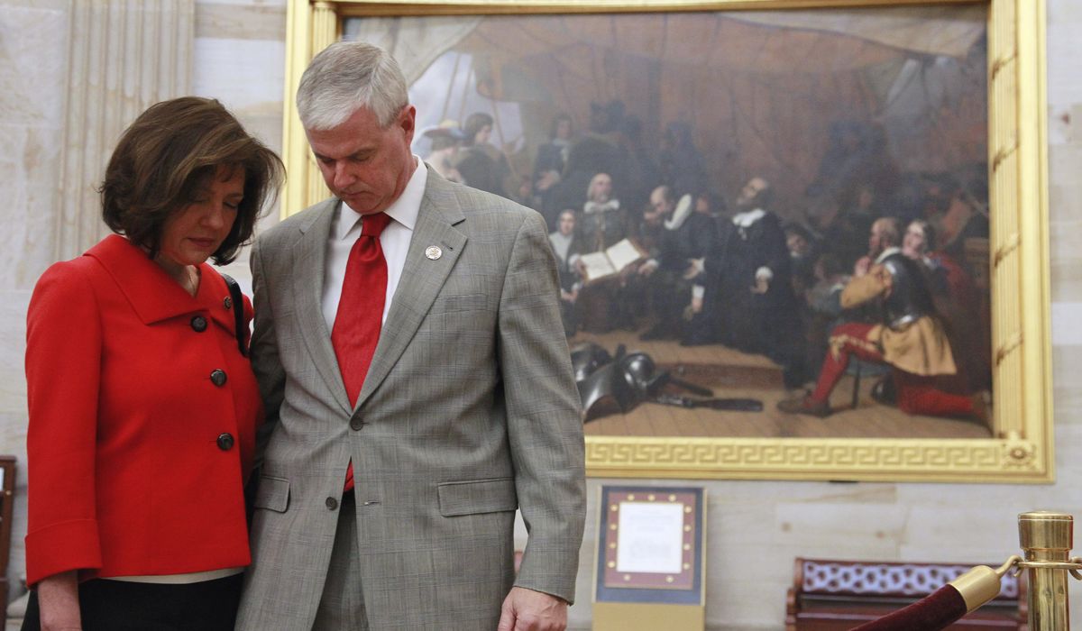 The wife of Rep. Steve Womack, Arkansas Republican, died Sunday, just three days after President Trump commuted their son’s prison sentence.